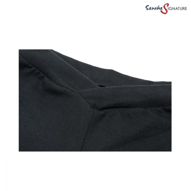Wykończenie: Subtelne, tonalne haftowane logo „S” Sansha na wysokości biodra, dodające elegancji i podkreślające markę.